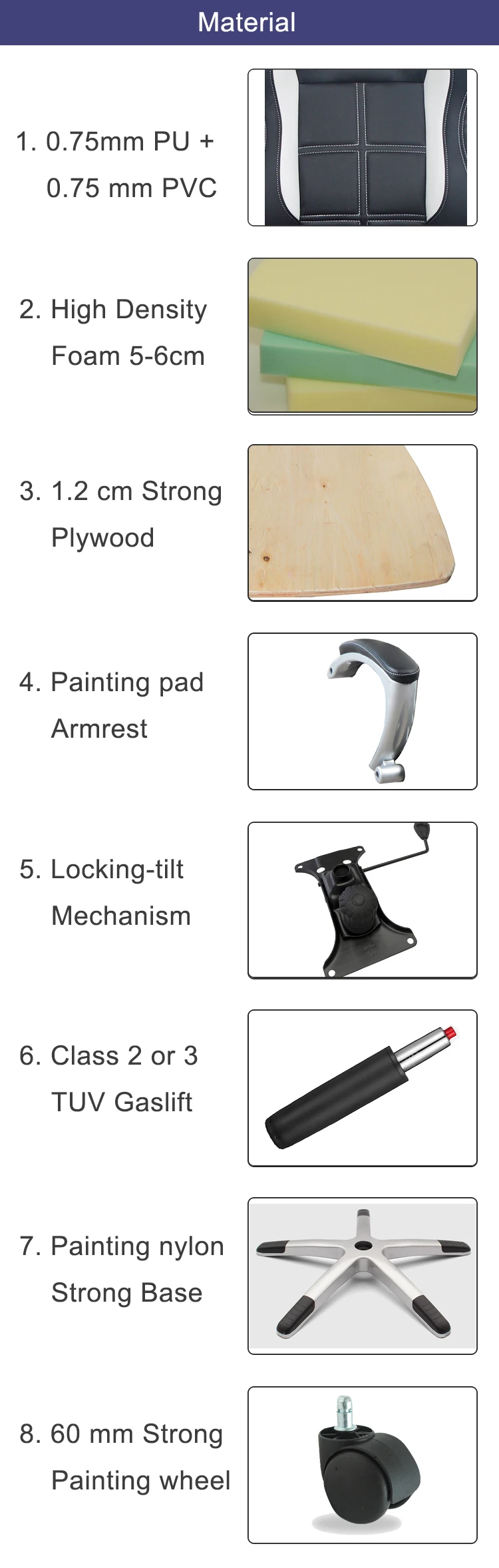 Quick Details Type: Office Furniture Specific Use: Office Chair General Use: Commercial Furniture Material: Synthetic Leather, PU+PVC Folded: No Style: Executive Chair, Lift Chair, Swivel Chair Size: 65*65*113-121cm Place of Origin: Zhejiang, China (Mainland) Brand…