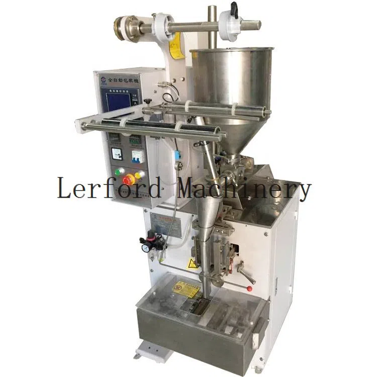 8) Mit Drucker (um das Datum und die Chargennummer codieren zu können) und rotierender Klinge (in der Lage sein, die Länge des Beutels und die Form der Beutelkantenverpackung (Shampoo-Beutel-Füllmaschine) einzustellen.